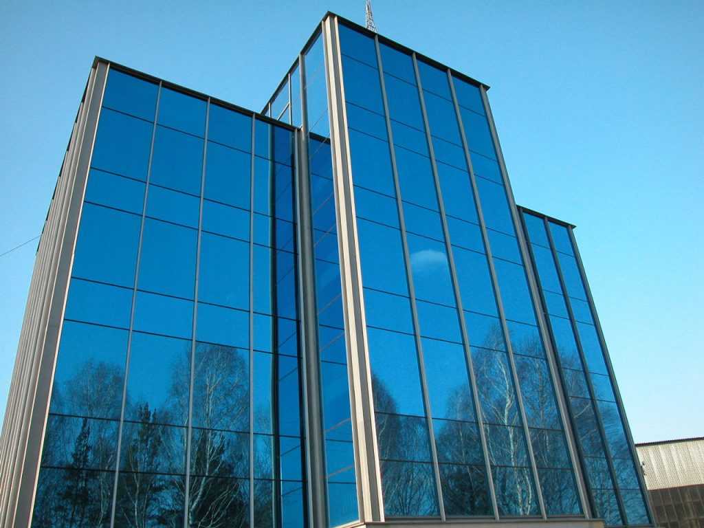 Отделка фасада витражами из алюминиевого профиля эффективно решает задачи дизайнеров. Владельцы здания получают экономичную отделку, помогающую снизить расходы на отопление зимой и кондиционирование помещений летом. Освещение внутренних площадей не уменьшается, так как ограничения остекленной площади на фасаде нет.